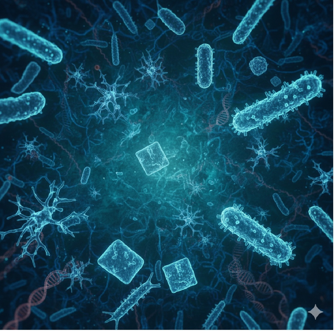 Immagine creata dall'intelligenza artificiale di archei sui toni del blu